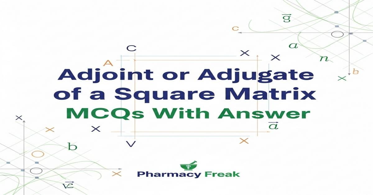 Understanding the adjoint (or adjugate) of a square matrix is essential for B. Pharm students studying pharmacy mathematics and linear algebra applications in pharmacokinetics. The adjoint, defined as the transpose of the cofactor matrix, ties together cofactors, minors, determinants and inverse matrices. Key properties—such as A·adj(A) = det(A) I and A⁻¹ = adj(A)/det(A) for non-singular matrices—help solve linear systems in drug modeling, formulation calculations and data fitting. This introduction gives clear definitions, computational steps and important identities to strengthen conceptual understanding and exam readiness. Now let’s test your knowledge with 50 MCQs on this topic.