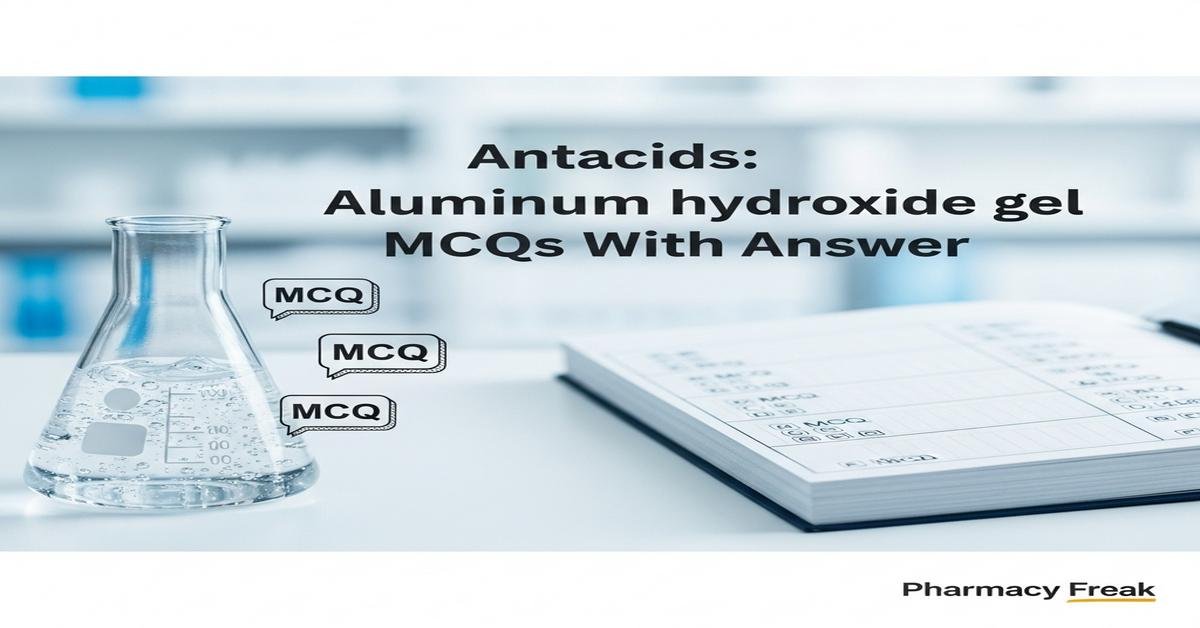Introduction: Aluminum hydroxide gel is a widely used antacid studied in B. Pharm pharmacology and pharmaceutics. This concise, Student-friendly overview highlights aluminum hydroxide gel’s mechanism of action, acid neutralization capacity, formulation types, onset and duration, phosphate-binding properties, and common adverse effects like constipation and hypophosphatemia. It also covers important drug interactions (tetracyclines, fluoroquinolones, iron), safety in renal impairment, pharmacokinetics (low systemic absorption), and key quality-control tests such as acid neutralizing capacity titration. Mastering these concepts helps pharmacy students with clinical application, formulation decisions, and exam-focused revision. Now let’s test your knowledge with 50 MCQs on this topic.