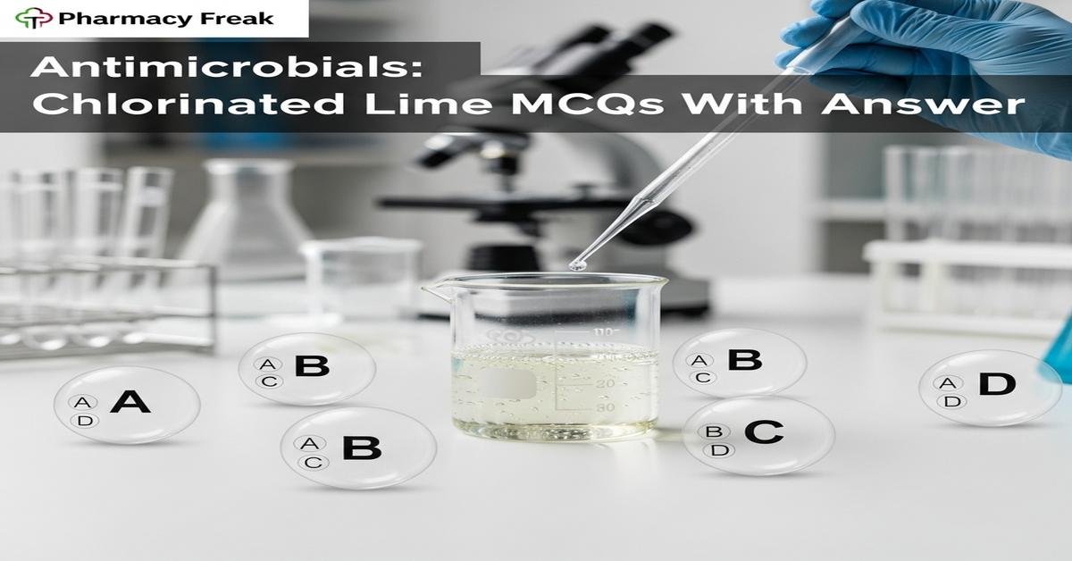 Introduction: Chlorinated lime (bleaching powder, calcium hypochlorite) is a widely used antimicrobial disinfectant in pharmaceutical and public health settings. B.Pharm students must understand its chemistry, spectrum of activity, mechanism of action through free chlorine release, methods of preparation, stability issues, standardization, and safe handling. Key topics include appropriate concentrations for surface and water disinfection, effects of organic matter, neutralization, and limitations such as corrosiveness and inactivation. This concise overview links theory to practical pharmacy applications, quality control tests, and regulatory considerations to prepare students for exams and lab work. Study focus: pharmacopoeial standards, assay methods, and environmental safety. Now let’s test your knowledge with 50 MCQs on this topic.