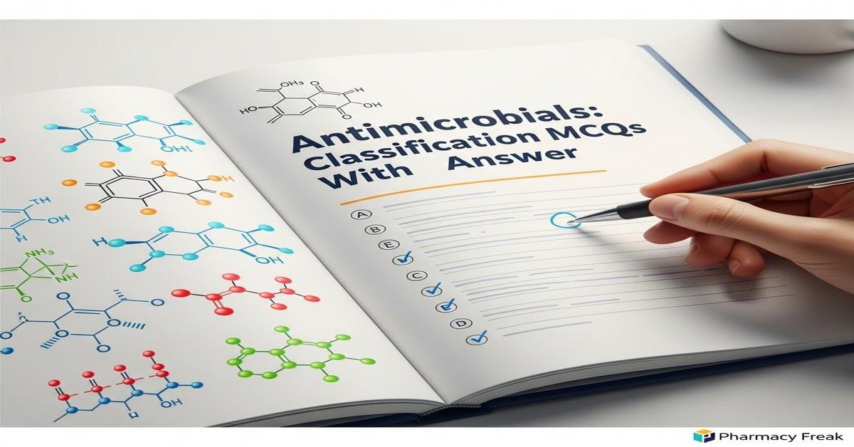 Antimicrobials are vital in B. Pharm education, covering antibiotics, antivirals, antifungals, and antiparasitics. This introduction explores classification by chemical structure, mechanism of action, spectrum of activity, and clinical use — key concepts like β-lactams, macrolides, aminoglycosides, fluoroquinolones, azoles, polyenes, and nucleoside analogues. Understanding pharmacodynamics (MIC, MBC, time- vs concentration-dependent killing), resistance mechanisms (enzymatic degradation, efflux pumps, target modification), and adverse effects is crucial for safe therapy and stewardship. These MCQs test in-depth knowledge of drug classes, targets, lab methods, and therapeutic considerations to prepare B. Pharm students for exams and clinical practice. Now let’s test your knowledge with 50 MCQs on this topic.