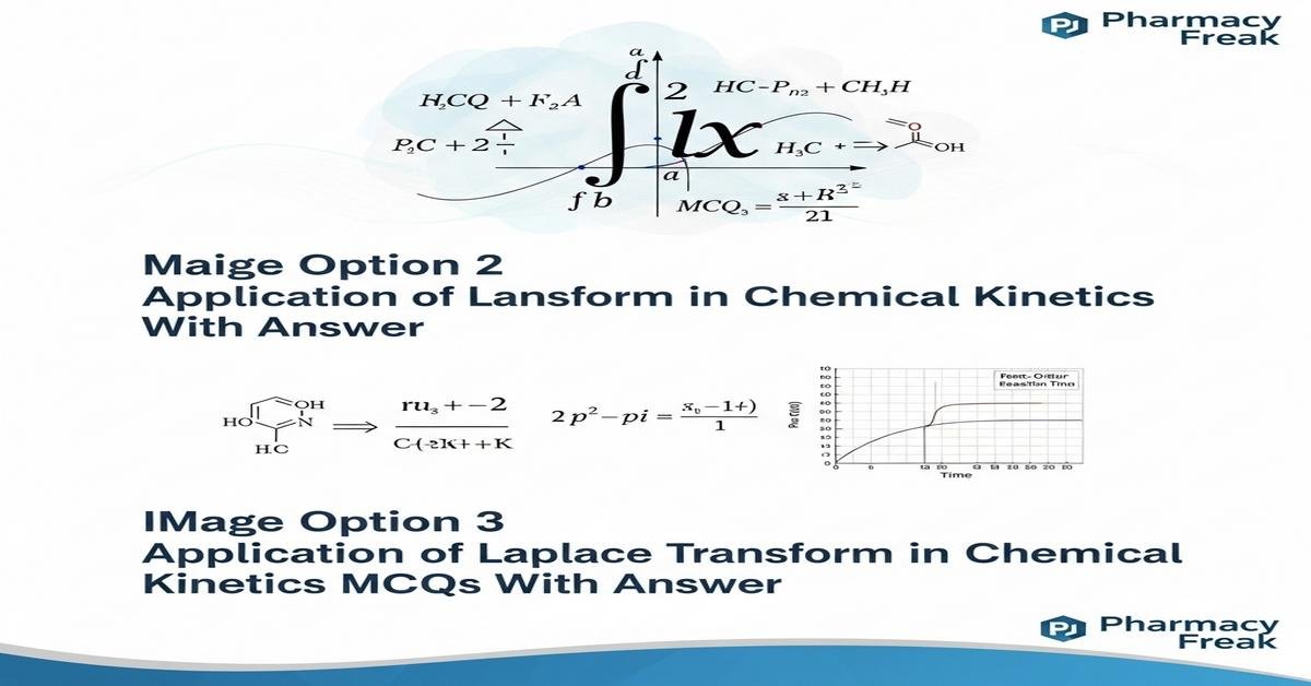 Introduction: The Laplace Transform is a powerful mathematical tool for solving linear differential equations encountered in chemical kinetics and pharmaceutical modeling. For B. Pharm students, mastering Laplace methods helps convert time-domain rate equations into algebraic expressions in the Laplace domain, simplify coupled first-order reactions, analyze impulse and step dosing, and derive concentration–time profiles for compartmental models. Key concepts include linearity, initial-condition handling, inverse transforms, convolution, and partial-fraction inversion—essential for pharmaceutical kinetics, reactor modeling, and pharmacokinetics. This focused MCQ set emphasizes practical applications of Laplace Transform in chemical kinetics, highlighting problem-solving strategies and common pitfalls. Now let’s test your knowledge with 50 MCQs on this topic.