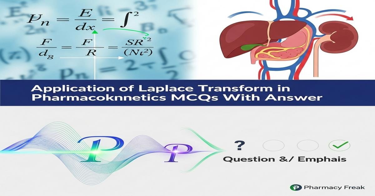 Introduction: The application of Laplace Transform in pharmacokinetics helps B. Pharm students convert time-domain differential equations of drug disposition into easily solvable algebraic expressions. By using Laplace methods, you can analyze compartment models, IV bolus and infusion kinetics, first-order absorption, and convolution integrals for complex dosing regimens. Key advantages include simplifying initial-condition problems, finding transfer functions, applying partial fraction inversion, and using initial/final value theorems to interpret drug concentration-time profiles. Mastery of Laplace techniques strengthens PK modeling, parameter estimation (k, Vd, clearance) and problem-solving skills essential for coursework and research. Now let’s test your knowledge with 50 MCQs on this topic.