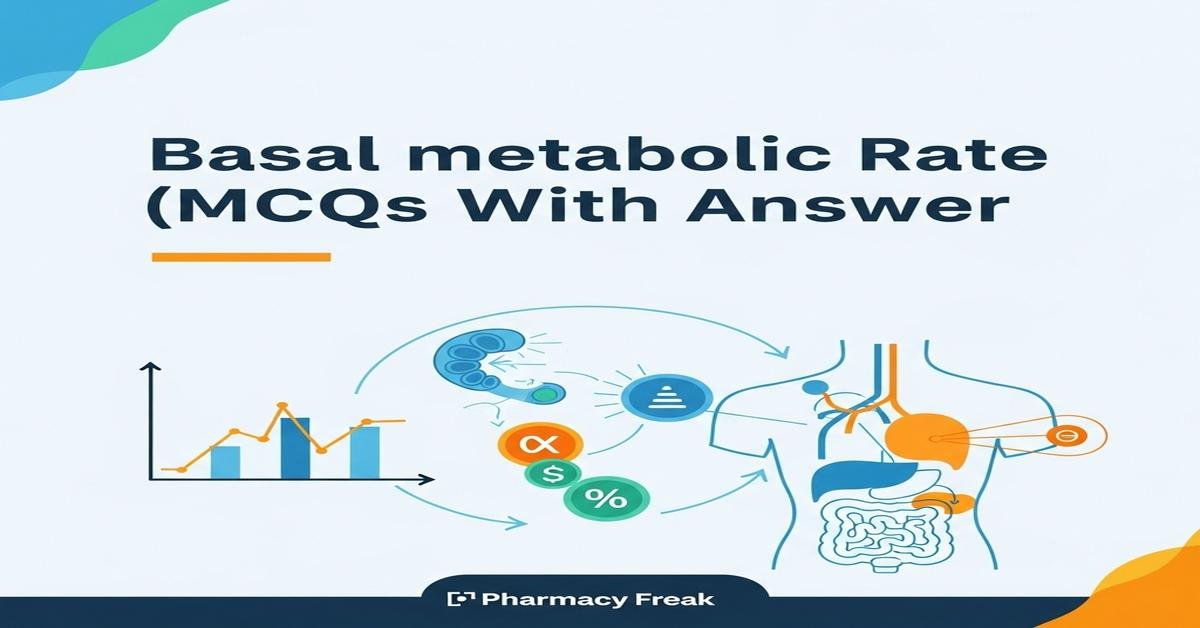 Basal metabolic rate (BMR) MCQs With Answer are essential study tools for B. Pharm students preparing for pharmacology, therapeutics, and clinical practice exams. This concise, keyword-rich introduction covers BMR definition, measurement methods (indirect calorimetry), standard conditions, influencing factors (age, sex, body composition, thyroid status), and common predictive equations (Harris-Benedict, Mifflin-St Jeor). Understanding BMR helps predict drug metabolism, dosing considerations, nutritional requirements, and energy balance in patients. The following targeted questions deepen conceptual knowledge and application skills, reinforce calculations, and clarify differences between BMR, RMR, and total energy expenditure. Now let’s test your knowledge with 50 MCQs on this topic.