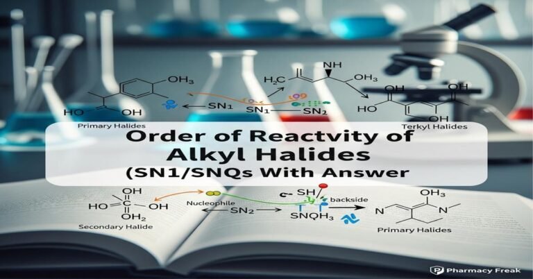 Order of reactivity of alkyl halides (SN1/SN2) MCQs With Answer — This concise guide is tailored for B.Pharm … Read more