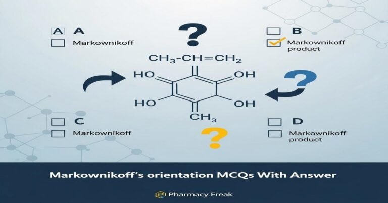 Anti-Markownikoff’s orientation MCQs With Answer is a focused guide for B.Pharm students covering anti-Markovnikov regiochemistry in alkene additions. … Read more