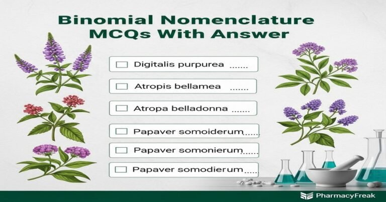 Binomial nomenclature MCQs With Answer is an essential revision set for B. Pharm students focusing on the standardized … Read more