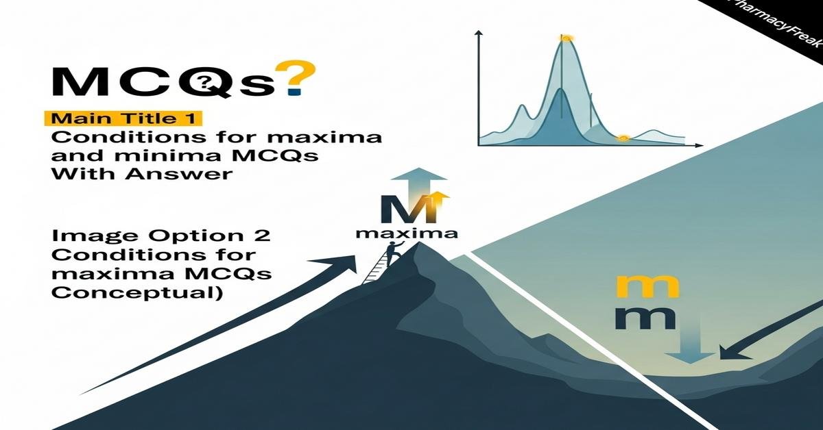 Mastering conditions for maxima and minima is essential for B. Pharm students tackling optimization problems in pharmacokinetics, drug formulation and process design. This concise guide focuses on critical points, first and second derivative tests, Hessian matrix, Lagrange multipliers and practical applications in pharmaceutical contexts. Through targeted learning and practice MCQs, you’ll strengthen skills in identifying local and global extrema, inflection points, saddle points and constrained optimization relevant to drug solubility, stability and dosage optimization. Keyword-rich coverage like ‘Conditions for maxima and minima MCQs With Answer’, ‘B. Pharm’, ‘critical points’, ‘second derivative test’, and ‘multivariable optimization’ helps both exam prep and practical problem solving. Now let’s test your knowledge with 50 MCQs on this topic.