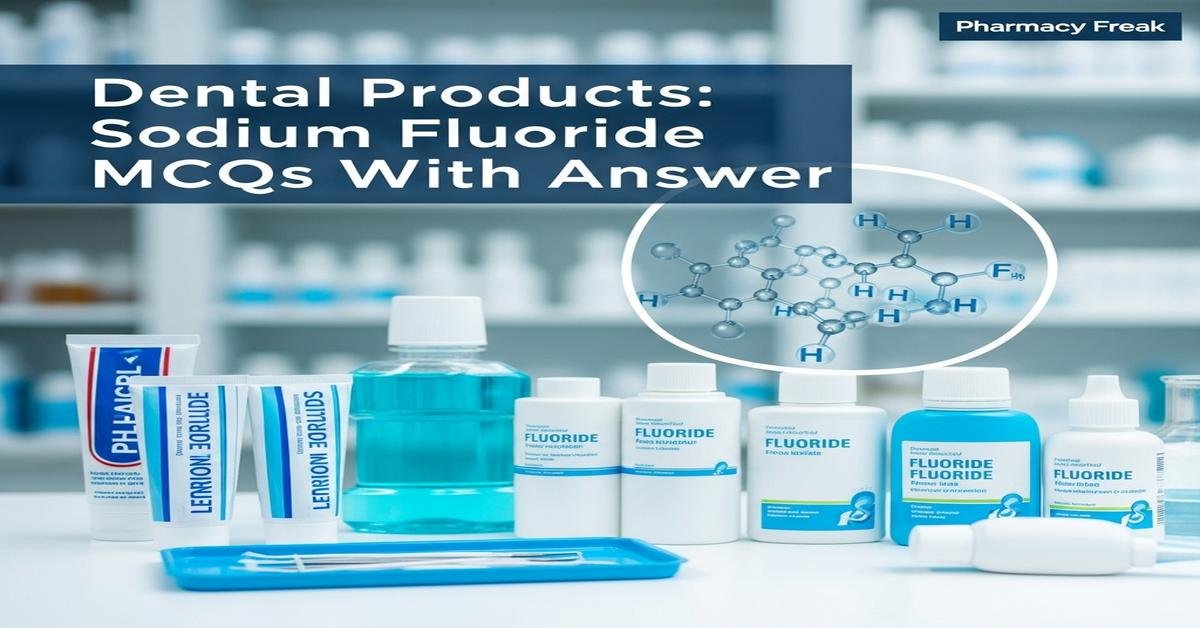 Sodium fluoride is a key ingredient in many dental products used for caries prevention, remineralization and topical fluoride therapy. This concise introduction covers sodium fluoride pharmacology, formulations (varnishes, gels, rinses, toothpastes), mechanism of action, concentrations, safety, toxicity and clinical considerations important for B. Pharm students studying dental therapeutics and pharmaceutical technology. Emphasis is placed on formulation choices, fluoride bioavailability, compatibility with restorations, and analytical testing methods relevant to quality control. This primer will strengthen your understanding of sodium fluoride dental products, formulation challenges, dosing and patient safety. Now let’s test your knowledge with 50 MCQs on this topic.