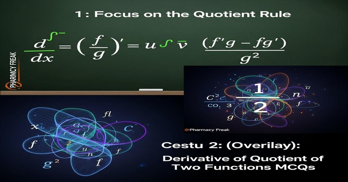 Derivative of quotient of two functions MCQs With Answer is a focused practice set designed for B. Pharm students to master the quotient rule and its applications in pharmacokinetics and drug kinetics. This introduction covers practical techniques for differentiating u/v, rewriting quotients as products, handling exponentials, logs and trigonometric ratios, and interpreting rates of change in concentration-time models. Emphasis is placed on common pitfalls—like forgetting the denominator squared—and on simplifying derivatives for clear pharmacological interpretation. Ideal for exam prep and applied calculations, these MCQs link calculus concepts directly to B. Pharm problems such as drug concentration, clearance and rate equations. Now let’s test your knowledge with 50 MCQs on this topic.