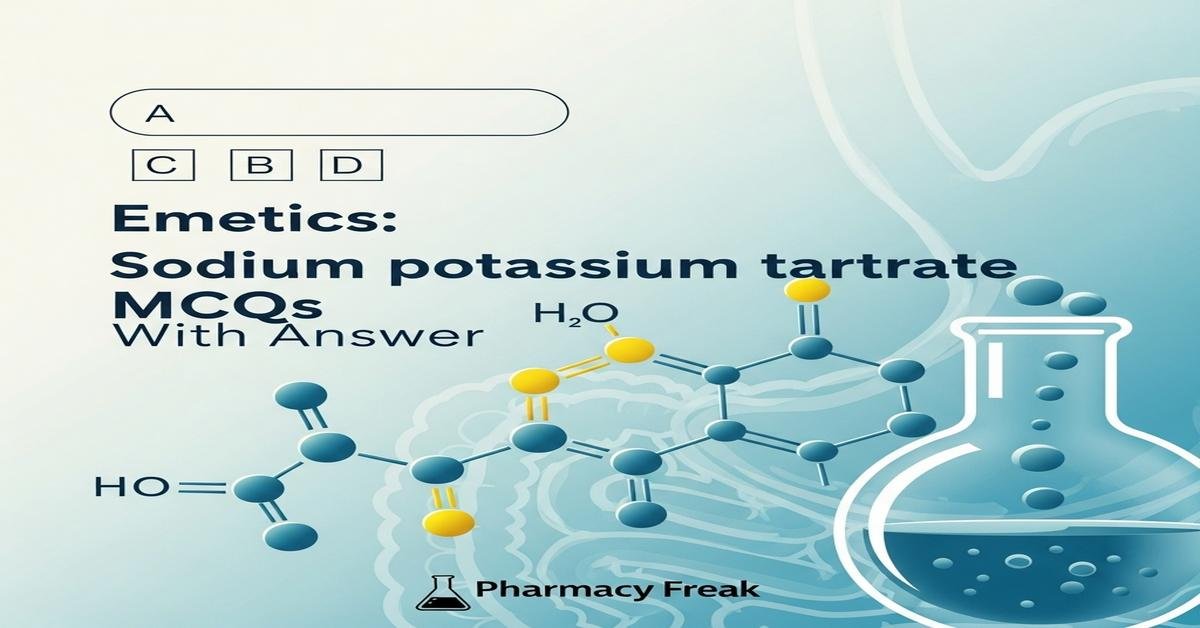 Clarification needed: Do you mean the emetic “tartar emetic” (antimony potassium tartrate), which is the classic emetic discussed in pharmacology, or “sodium potassium tartrate” (Rochelle salt), which is a different compound not commonly used as an emetic? Please confirm which compound you want MCQs on so I can create accurate, B.Pharm-level questions and answers in HTML format.