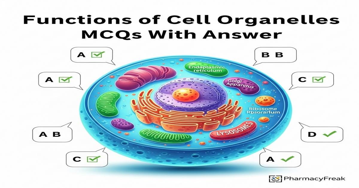 Functions of cell organelles MCQs With Answer is a focused resource for B.Pharm students to master cellular organelle roles relevant to pharmacology, drug metabolism and therapeutic targeting. This concise, keyword-rich introduction covers organelles such as mitochondria, endoplasmic reticulum, Golgi apparatus, lysosomes, peroxisomes, ribosomes and plasma membrane with emphasis on biochemical functions, drug-processing enzymes (e.g., CYP450), intracellular trafficking and implications for drug action and toxicity. Questions reinforce concepts like ATP synthesis, protein folding, glycosylation, autophagy and membrane transport that are critical for understanding pharmacokinetics and pharmacodynamics. Now let’s test your knowledge with 50 MCQs on this topic.