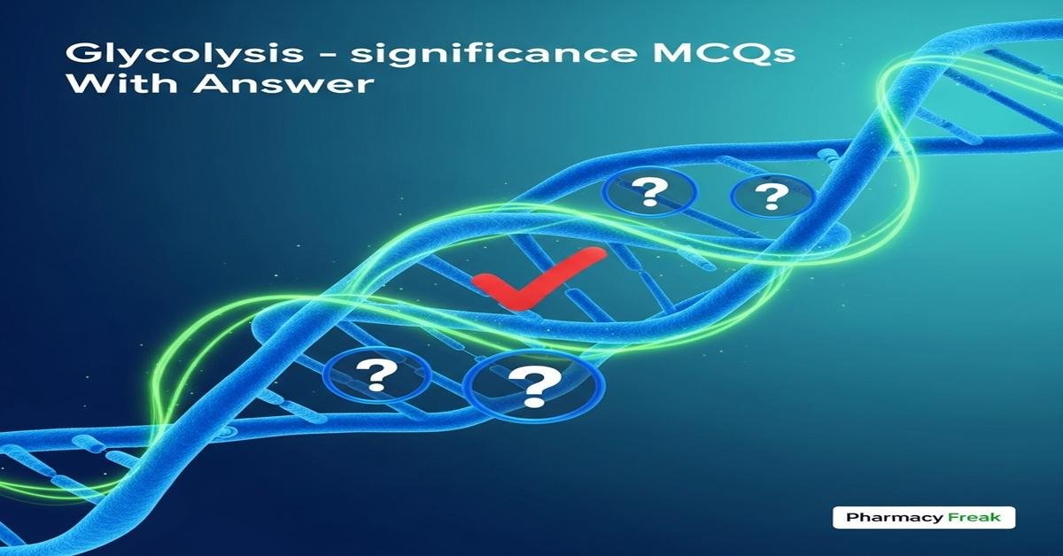 Introduction: Glycolysis is a central pathway in glucose metabolism and an essential topic for B. Pharm students studying pharmacology, biochemistry, and clinical therapeutics. Understanding glycolysis—its enzymes, regulation, ATP and NADH yield, and links to lactate production and the TCA cycle—helps explain drug effects, energy metabolism in tissues, and disease states such as cancer and inherited enzyme deficiencies. Key concepts include rate-limiting steps, substrate-level phosphorylation, and regulatory molecules like ATP, AMP, and fructose-2,6-bisphosphate. Mastery of glycolysis supports rational drug design and interpretation of metabolic tests. Now let’s test your knowledge with 50 MCQs on this topic.