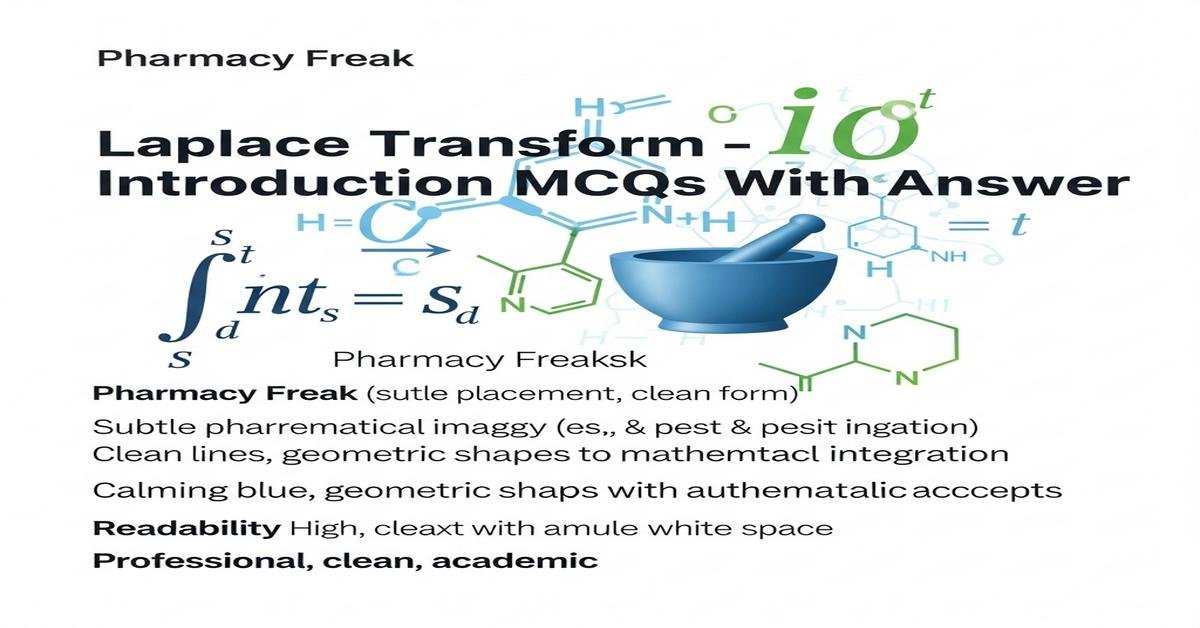 The Laplace Transform is a powerful mathematical tool used in B.Pharm to convert time-domain differential equations into algebraic forms, enabling easier analysis of pharmacokinetic models, control systems, and drug delivery dynamics. This introduction covers key concepts—definition, linearity, time and frequency shifting, transforms of standard functions, inverse Laplace, convolution, and theorems like initial/final value—framed for pharmacy students dealing with compartmental models, IV infusion, and elimination kinetics. Emphasis is on practical application: finding transfer functions, solving ordinary differential equations for concentration–time profiles, and interpreting poles for stability. These MCQs reinforce understanding and exam readiness for pharmaceutical engineering and pharmacokinetics topics. Now let’s test your knowledge with 50 MCQs on this topic.