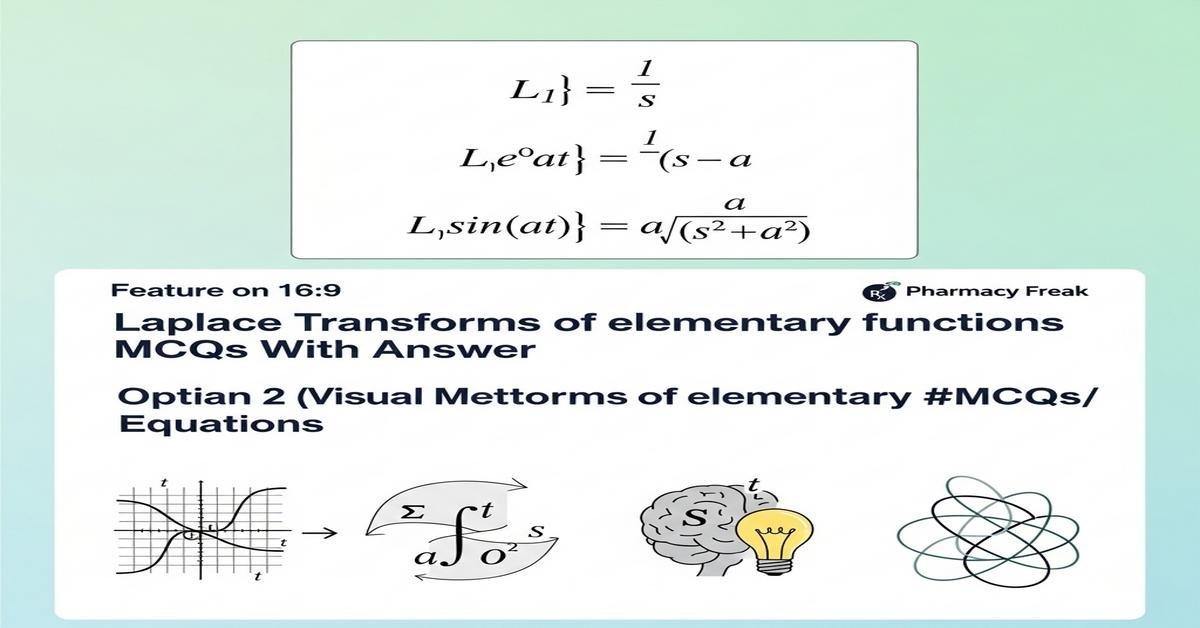 Laplace Transforms of elementary functions MCQs With Answer offers B. Pharm students a focused way to master core s-domain techniques used in pharmacokinetic modeling and differential equation solutions. This concise, keyword-rich introduction covers Laplace transforms, inverse Laplace, time and frequency shifting, convolution, derivatives, and common transforms for polynomials, exponentials, sinusoids and step/delta functions. Each concept is tied to practical problem-solving skills useful in drug absorption and compartmental modeling. Clear explanations support exam preparation and conceptual clarity. Now let’s test your knowledge with 50 MCQs on this topic.