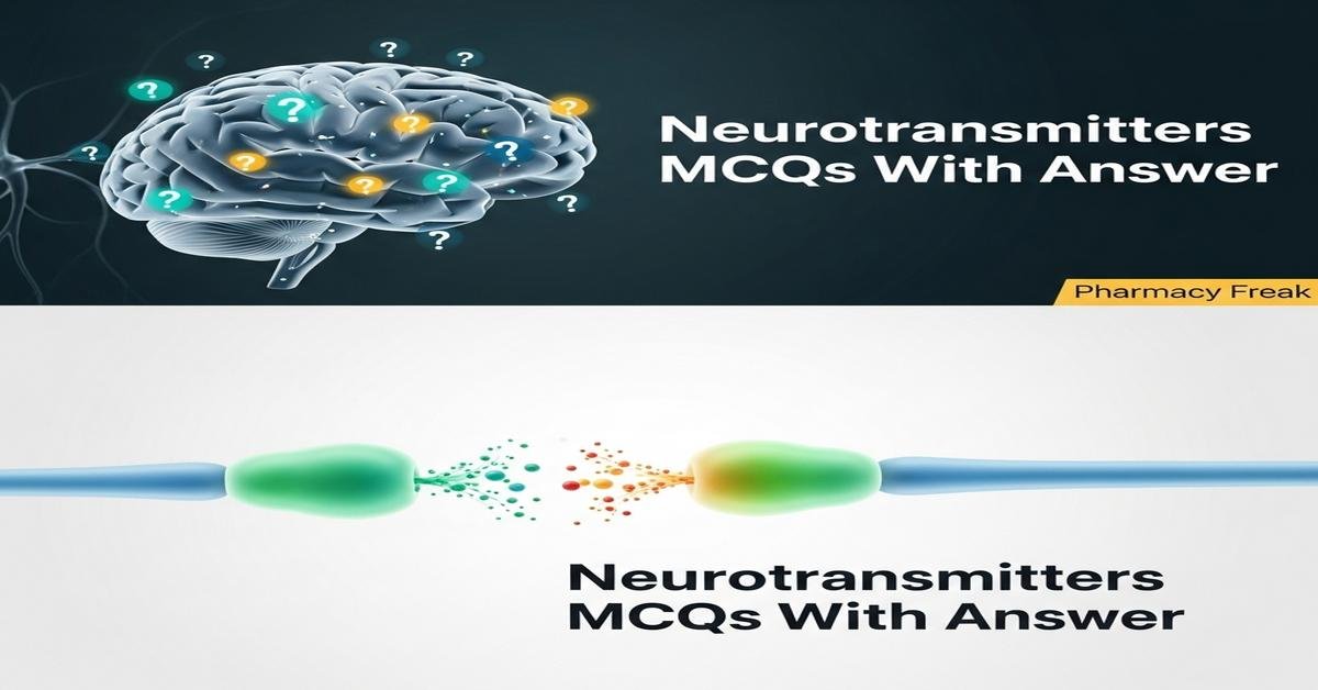 Introduction: This concise guide on Neurotransmitters MCQs With Answer is designed for B. Pharm students preparing for exams and clinical pharmacy practice. It covers neurotransmitter synthesis, storage, release, receptor pharmacology, reuptake, metabolism, and drug interactions with emphasis on acetylcholine, monoamines, amino acid transmitters and neuropeptides. The questions focus on mechanism of action, key enzymes (e.g., MAO, COMT, ChAT), transporters, receptor subtypes, relevant drugs and toxicology to strengthen mechanistic understanding and application. Use these targeted MCQs to reinforce synaptic physiology and therapeutics crucial for pharmacology and clinical dosing decisions. Now let’s test your knowledge with 50 MCQs on this topic.