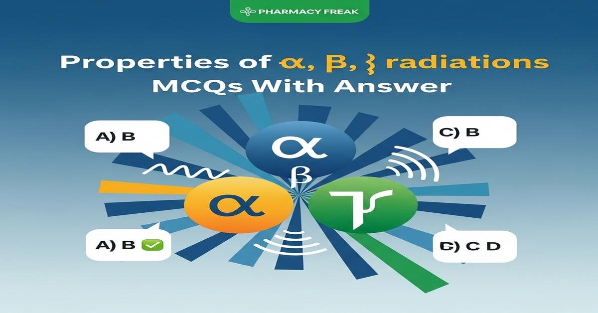 This concise guide covers the fundamental properties of alpha, beta and gamma radiations—mass, charge, penetrating and ionizing power, interactions with matter, shielding, detectors, biological effects, and applications in pharmacy. Tailored for B. Pharm students, the content emphasizes practical concepts such as LET, RBE, decay modes, units (Bq, Ci, Gy, Sv), and common isotopes used in radiolabeling, sterilization and imaging. Clear comparisons and real-world relevance help you master radiation safety and dosimetry principles critical in pharmaceutical practice. Now let’s test your knowledge with 50 MCQs on this topic.