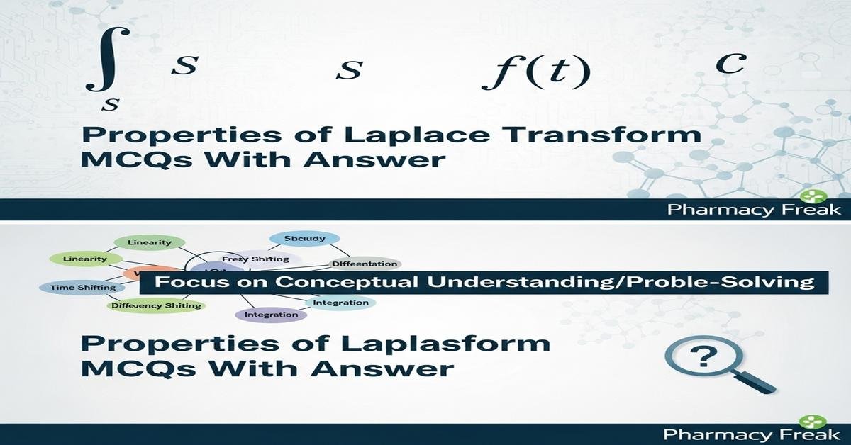 Mastering Properties of Laplace Transform MCQs With Answer is essential for B.Pharm students dealing with pharmacokinetics, compartment models and systems analysis. This concise introduction covers core properties—linearity, time and frequency shifting, scaling, convolution, differentiation and integration in time and s-domain—plus initial and final value theorems and region of convergence. Understanding these properties helps convert time-domain drug concentration equations to s-domain algebraic forms for easier solution and interpretation of stability and transfer functions. These targeted MCQs emphasize application to drug modeling, ODE solutions, inverse transforms and practical table look-ups, strengthening analytic skills for exams and research. Now let’s test your knowledge with 50 MCQs on this topic.