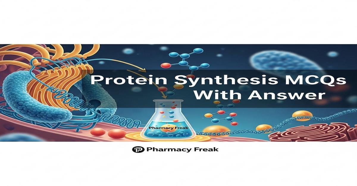 Protein synthesis MCQs With Answer for B. Pharm students provides a concise, exam-focused review of transcription, translation, ribosome structure, and regulation of gene expression. This set covers core concepts such as mRNA processing, tRNA charging, initiation/elongation/termination factors, codon-anticodon pairing, wobble, and post-translational modification with clinical relevance to antibiotics and pharmacological inhibitors. Designed for B. Pharm exam prep and competitive tests, these targeted protein synthesis MCQs emphasize mechanism, prokaryotic versus eukaryotic differences, and drug targets to strengthen both conceptual understanding and application in pharmacy practice. Now let’s test your knowledge with 50 MCQs on this topic.