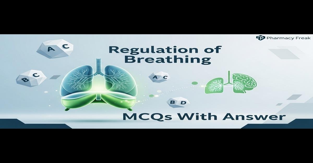 Regulation of breathing MCQs With Answer is an essential resource for B. Pharm students studying respiratory physiology and pharmacology. This concise, Student-friendly post covers neural and chemical control of ventilation, central and peripheral chemoreceptors, lung reflexes, ventilation–perfusion balance, and drug effects on respiratory drive. Designed for exam prep and practical understanding, these MCQs emphasize mechanisms — medullary respiratory centers, pre-Bötzinger complex, Hering–Breuer reflex, carotid and aortic bodies, CO2/O2/pH sensing, and pharmacologic modulators like opioids, doxapram, and theophylline. Strengthen your clinical reasoning and drug-related knowledge with focused practice questions. Now let’s test your knowledge with 50 MCQs on this topic.