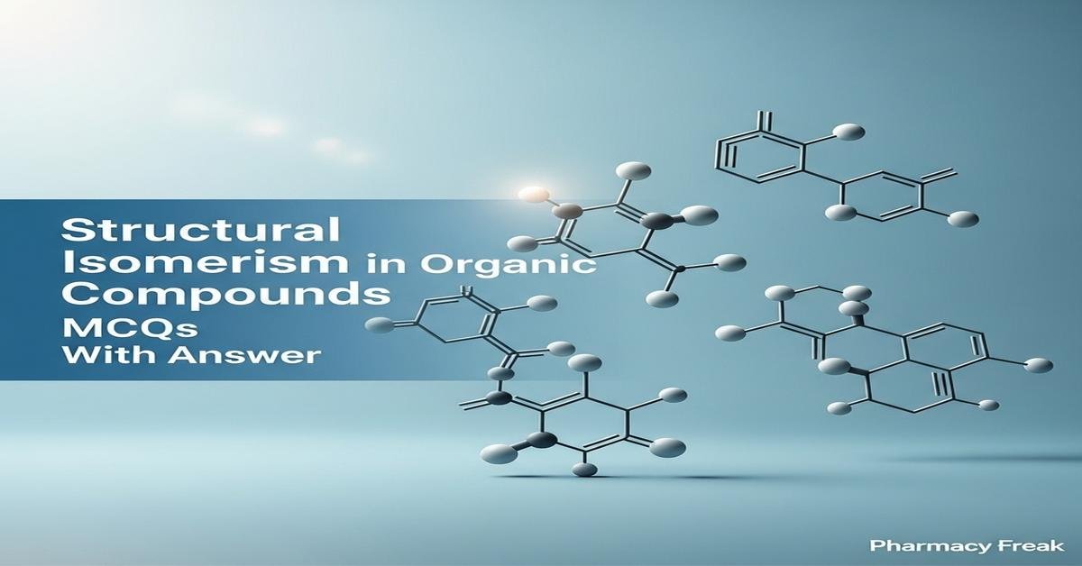 Structural isomerism (also called constitutional isomerism) is a fundamental concept for B. Pharm students studying drug molecules, where compounds share the same molecular formula but differ in atom connectivity. Understanding types — chain (skeletal), position, functional group, metamerism, ring–chain and tautomerism — helps predict physical properties, reactivity, stability and pharmacological behavior. Structural isomers influence melting/boiling points, solubility, metabolic pathways and receptor binding, so mastery supports formulation and medicinal chemistry. This focused set of practice MCQs emphasizes examples, nomenclature, counting isomers and analytical identification techniques relevant to pharmacy studies. Now let’s test your knowledge with 50 MCQs on this topic.