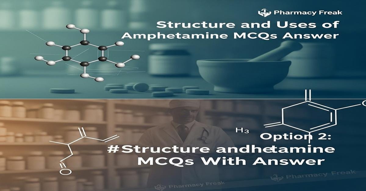 Amphetamine is a phenethylamine derivative with an alpha‑methyl group that enhances central nervous system stimulation, making it important in pharmacology and therapeutics. B.Pharm students should understand amphetamine structure, stereochemistry (d- vs l‑enantiomers), mechanism of action (monoamine release, DAT/NET interaction, VMAT2 effects), pharmacokinetics, therapeutic uses (ADHD, narcolepsy), adverse effects, interactions (MAO inhibitors), and regulatory status. This concise, keyword-rich overview prepares students for exam questions and clinical reasoning on amphetamine pharmacology, metabolism, formulations, toxicology, and monitoring. Now let’s test your knowledge with 50 MCQs on this topic.