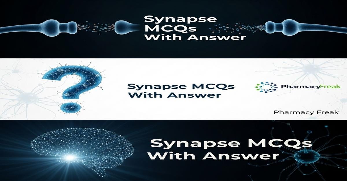 Synapse MCQs With Answer is a targeted question set designed for B. Pharm students to master synaptic physiology, pharmacology, and clinical relevance. These synapse MCQs cover neurotransmitters, receptor types, synaptic transmission steps, vesicle cycle, synaptic plasticity (LTP/LTD), and drug actions affecting synapses. Ideal for exam prep, revision, and classroom practice, this collection emphasizes high-yield topics and application-based scenarios to strengthen understanding of drug–synapse interactions and therapeutic implications. Keywords: Synapse MCQs With Answer, B. Pharm, synaptic transmission, neurotransmitters, synaptic pharmacology, synaptic plasticity. Now let’s test your knowledge with 50 MCQs on this topic.