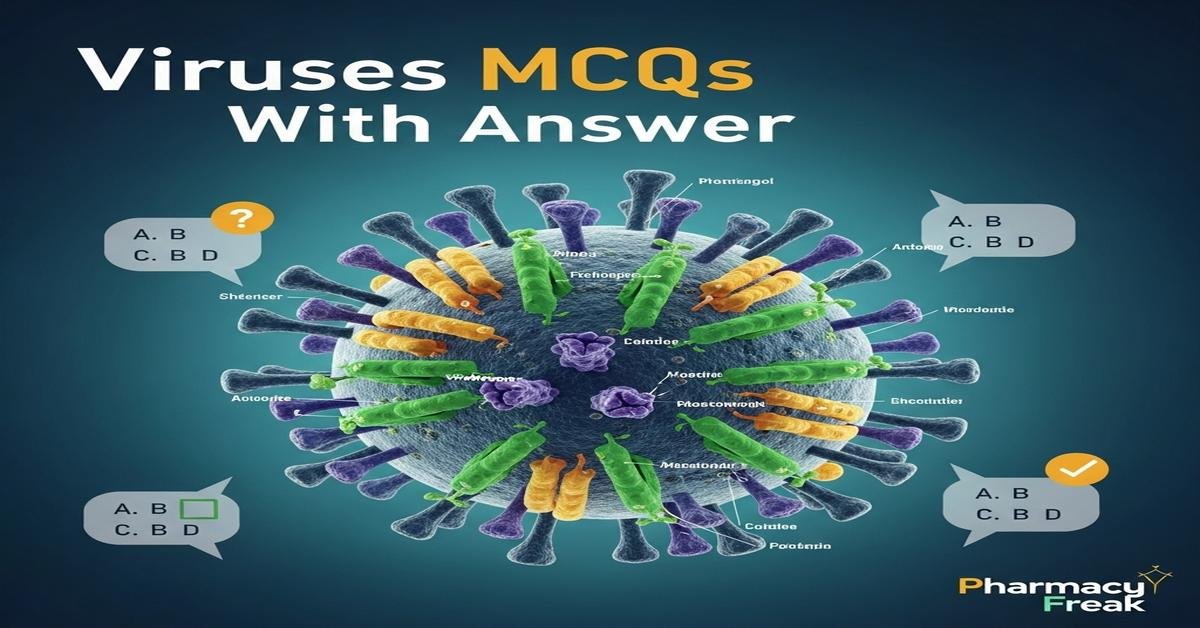 Viruses MCQs With Answer is a focused resource for B. Pharm students preparing for exams in virology, pharmacology and clinical microbiology. This concise, keyword-rich introduction covers viral structure, replication cycles, classification (Baltimore system), pathogenesis, diagnostic methods, antiviral mechanisms and vaccine principles, emphasizing pharmacological relevance. Designed to enhance retention, the MCQs highlight drug targets, resistance, and clinically important viruses like influenza, HIV, hepatitis and herpesviruses. Each question reinforces core concepts needed for therapeutics and lab interpretation. Clear explanations and repeated practice improve recall and exam performance. Now let’s test your knowledge with 50 MCQs on this topic.